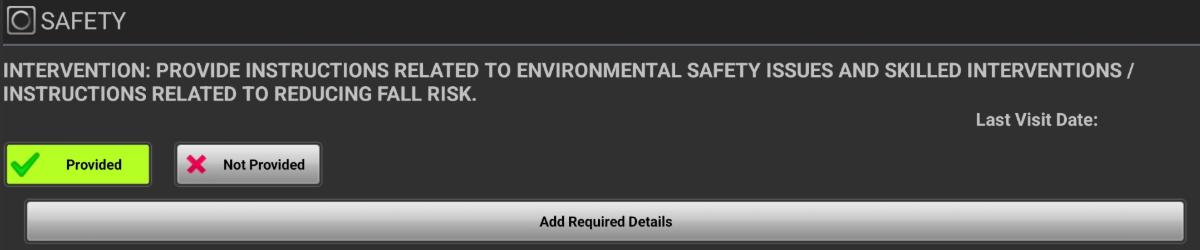 - To document that Interventions in this section were provided during the Evaluation, click on “Provided”, which will turn the button green.